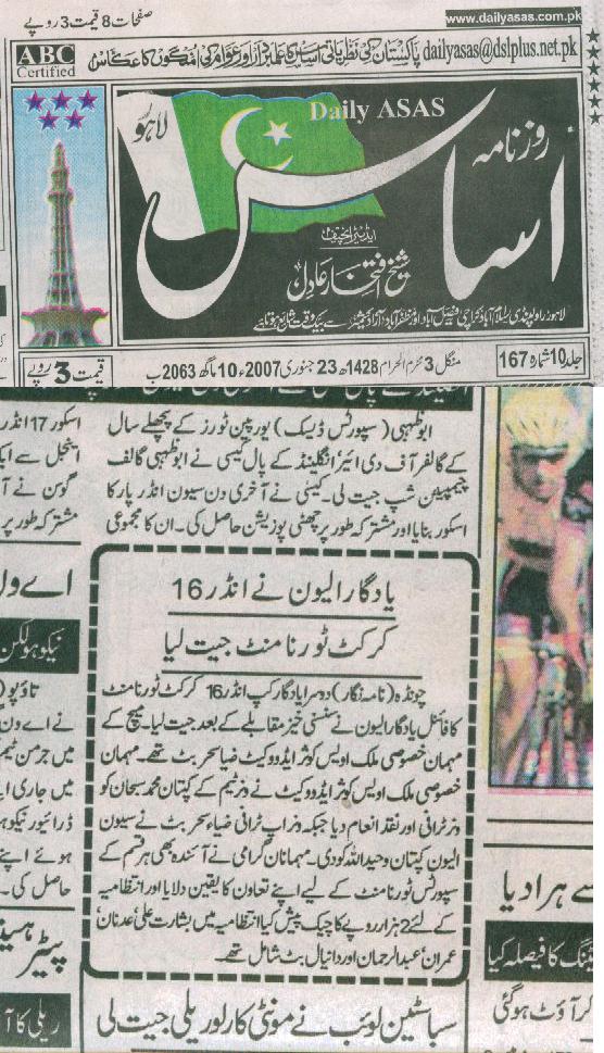Sajjad Iqbal Yadgar XI receiving the best batsman's award